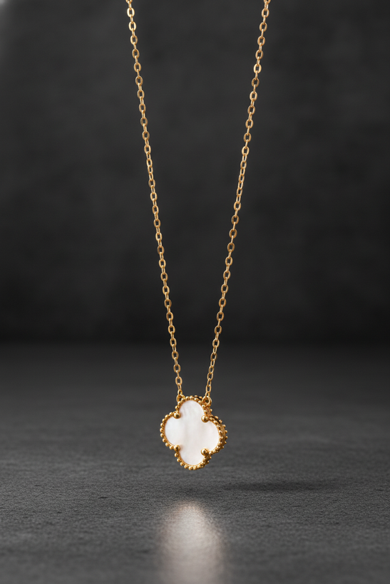 این گردنبند با استفاده از صدف طبیعی و طراحی بی نظیر ونکلیف ،نمایی درخشان و لطیف دارد که با زنجیر فلامینگو ظرافت آن دو چندان شده